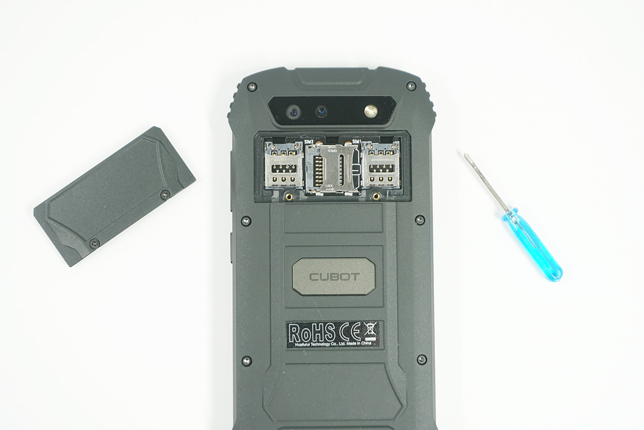 付属のドライバーで簡単にカバーを取り外せます。SIMスロットは、デュアルSIMカードに対応しています。また、microSDカードを利用することも可能です。
