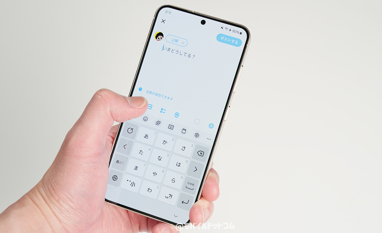 ちなみに、片手操作については"できる印象"。僕の手だと、キーボード片手打ちや上部ボタンなども片手で操作できました。