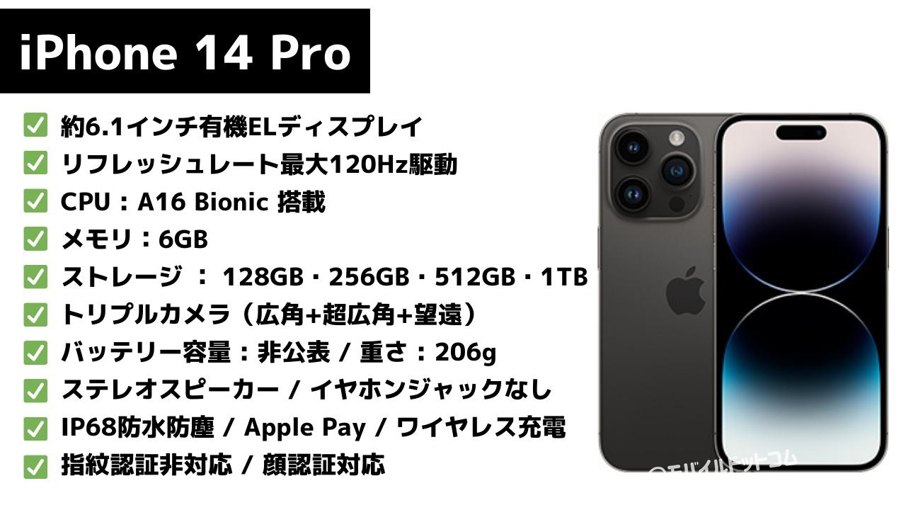 iPhone 14 Proのスペック表