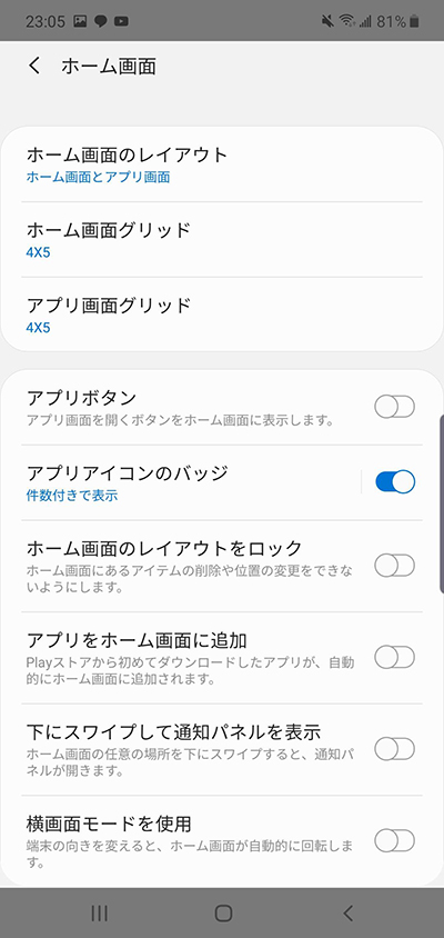 ホーム画面のレイアウトやアプリのアイコンのバッジ、アプリの非表示等の細かな設定が行えるようになっています。