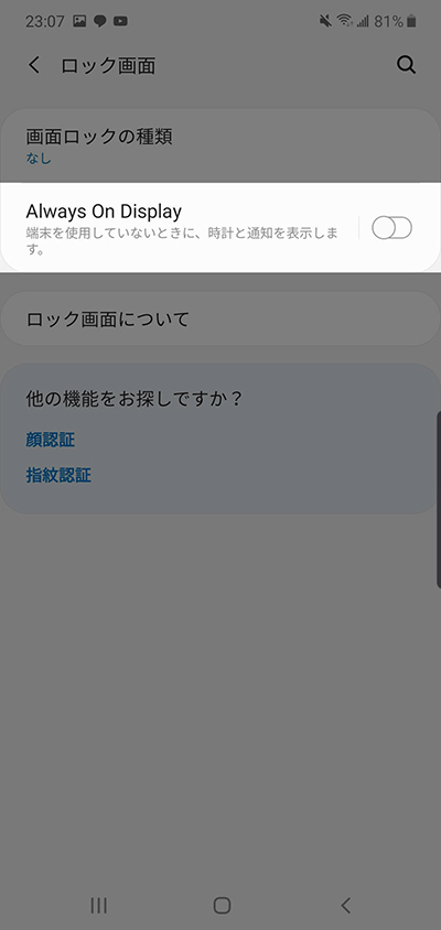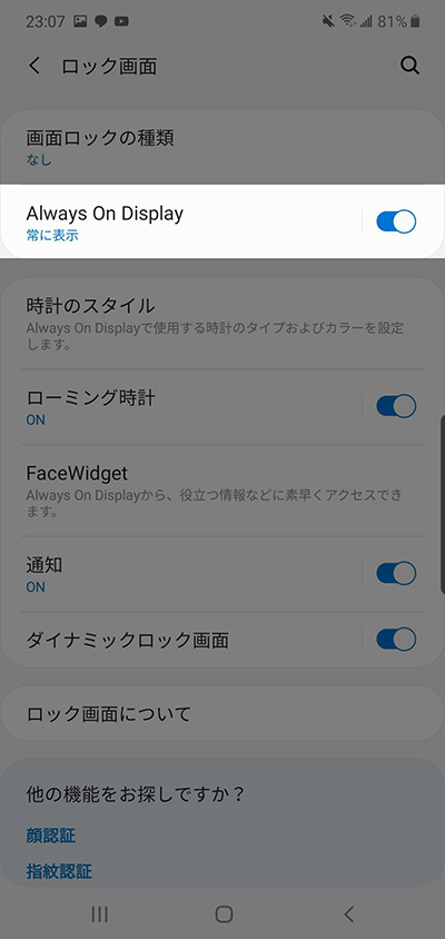 その他にも通知の表示設定が細かく行えます。Always On Displayは、ロック画面から通知や時間を確認する上でも便利なので是非チェックしてみてください。