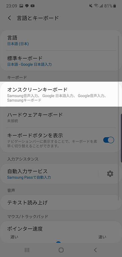 言語とキーボードからオンスクリーンキーボードで好きなキーボードを選択します。