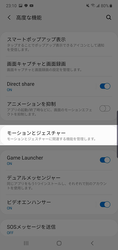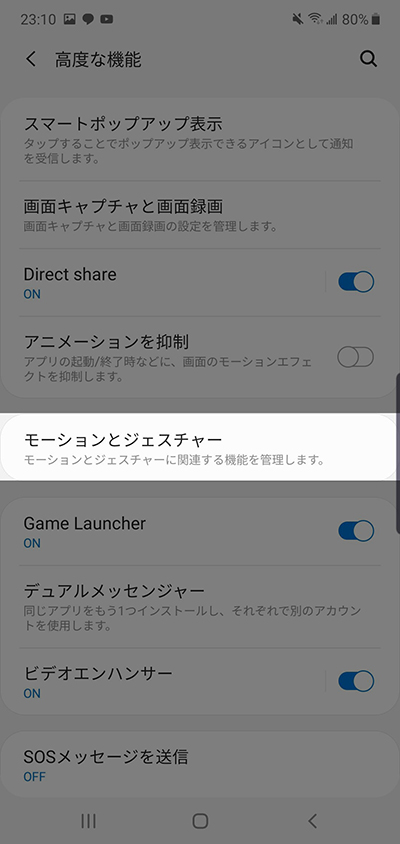 ホーム画面にある設定アプリから進み、高度な設定からモーションとジェスチャー