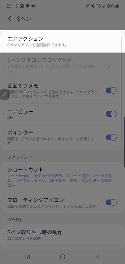 Galaxy Note10+はSペンを使ったエアアクションという便利な機能