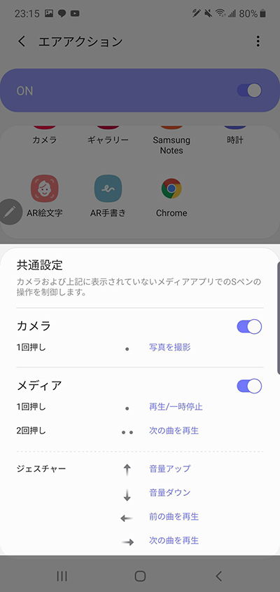 Galaxy Note10+はSペンを使ったエアアクションという便利な機能をショートカットで使えたり、ジェスチャー操作を出来たり色々と便利なNoteシリーズだから使える機能です。